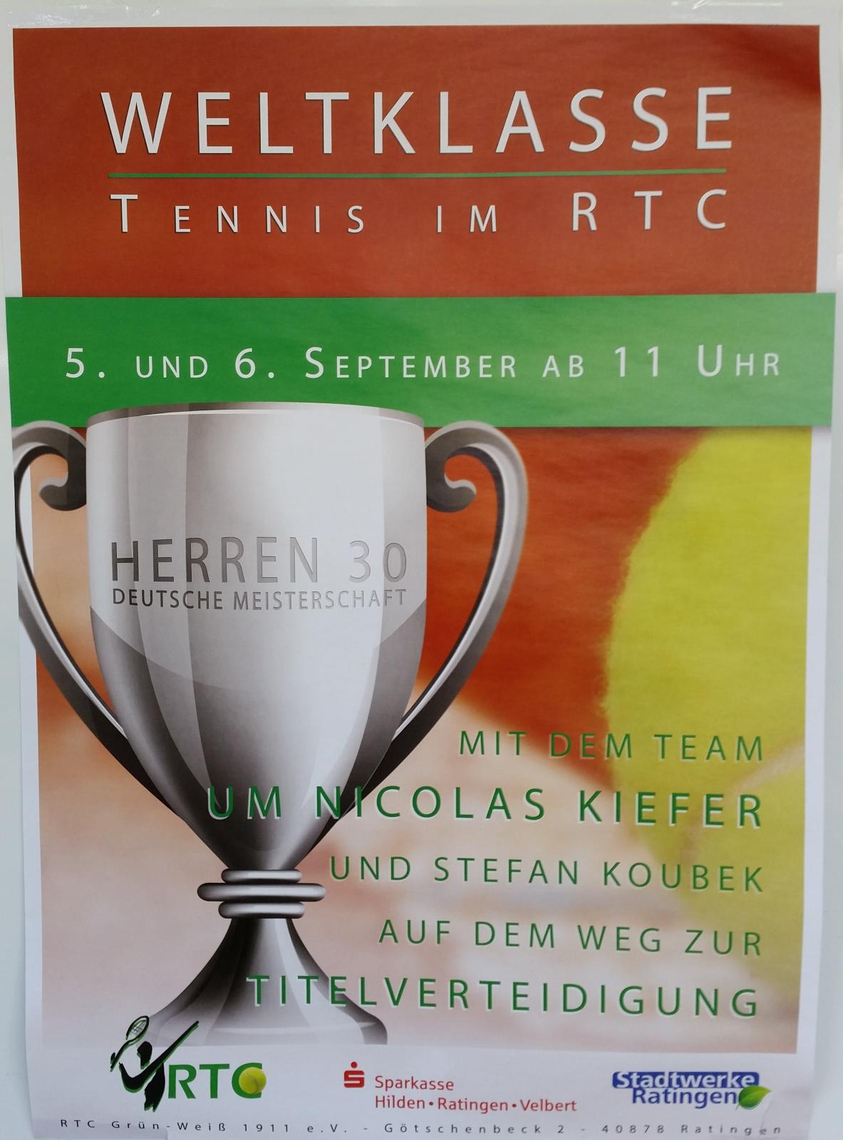 wir richten am kommenden Wochenende auf unserer Anlage die Endrunde der Bundesliga Herren 30 aus. Deshalb wird schon ab Freitag Nachmittag unsere Anlage komplett belegt sein, da wir noch die Ratinger Stadtmeisterschaften zu Ende spielen und den anreisenden Mannschaften Trainingsplätze bieten müssen. Am Samstag und Sonntag werden wir zwei Plätze für die Mitglieder soweit möglich freihalten, was sich aber ggf. aufgrund der Wetterlage als schwierig erweisen könnte. Es wäre daher gut, wenn Ihr Euer Tennisinteresse am kommenden WE auf das Zuschauen beschränken und unsere Mannschaft beim Kampf um die Deutsche Meisterschaft als Fan unterstützen würdet!