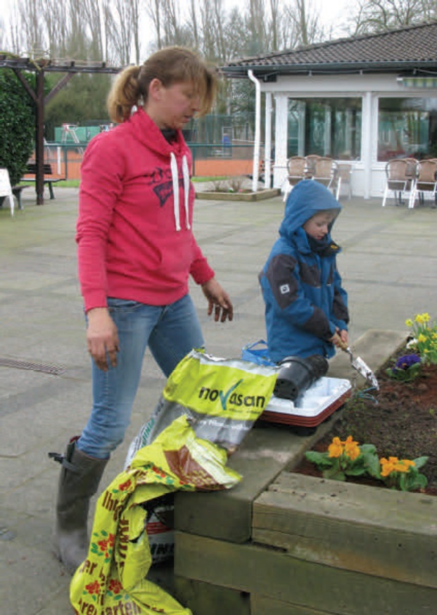 Diese nahm sich der Beete auf der Terrasse an und schuf auf dem ELAverwüsteten Kinderspielplatz und dem Streifen hinter Platz 1-3 wieder Ordnung. Als zu Mittag der Regen einsetzte, waren u.a. der für die Äste bereitgestellte Container gefüllt, die Beete bepflanzt, das Beet am Eingang mit Natursteinen neu eingefasst und das Büro aufgeräumt. Für die wenigen Teilnehmer eine tolle Leistung, für die wir uns als Vorstand noch einmal herzlich bedanken möchten. Allerdings stellten diese nicht zu Unrecht am Ende auch die Frage, ob sie denn die einzigen „Dummen“ waren. Über diese Frage sollten wir alle mal nachdenken!