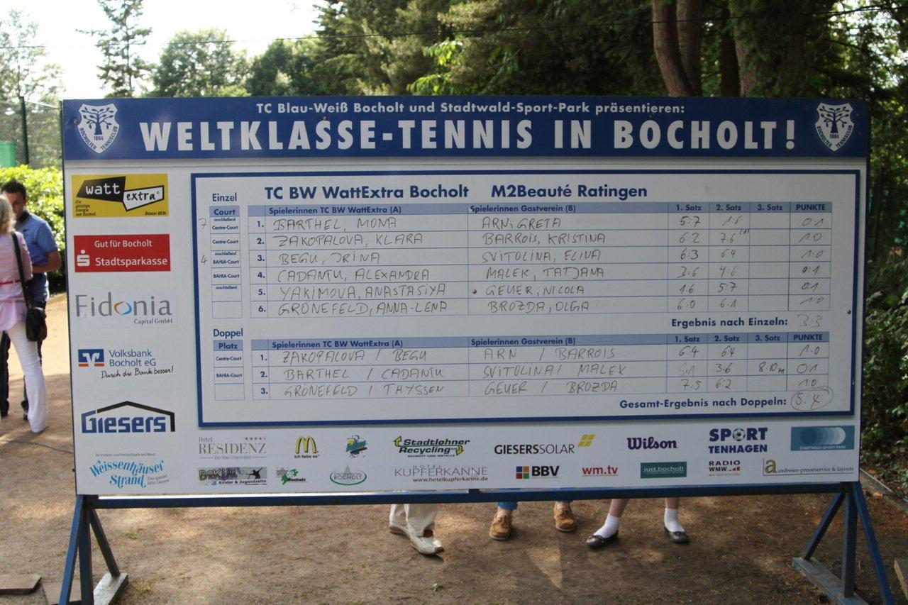 Im Endspiel um die Deutsche Meisterschaft der 1. Damen-Bundesliga stand M2Beauté Ratingen gegen den TC WattExtra Bocholt trotz Fehlens der obersten 4 Spielerinnen kurz vor der Sensation, mußte sich am Ende aber leider knapp 4:5 geschlagen geben und wurde damit Deutscher Vizemeister 2012.
